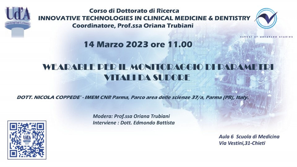 Nicolà Coppedè è ricercatore presso l'IMEM di Parma e si occupa come group leader di materiali per la sensoristica indossabile.